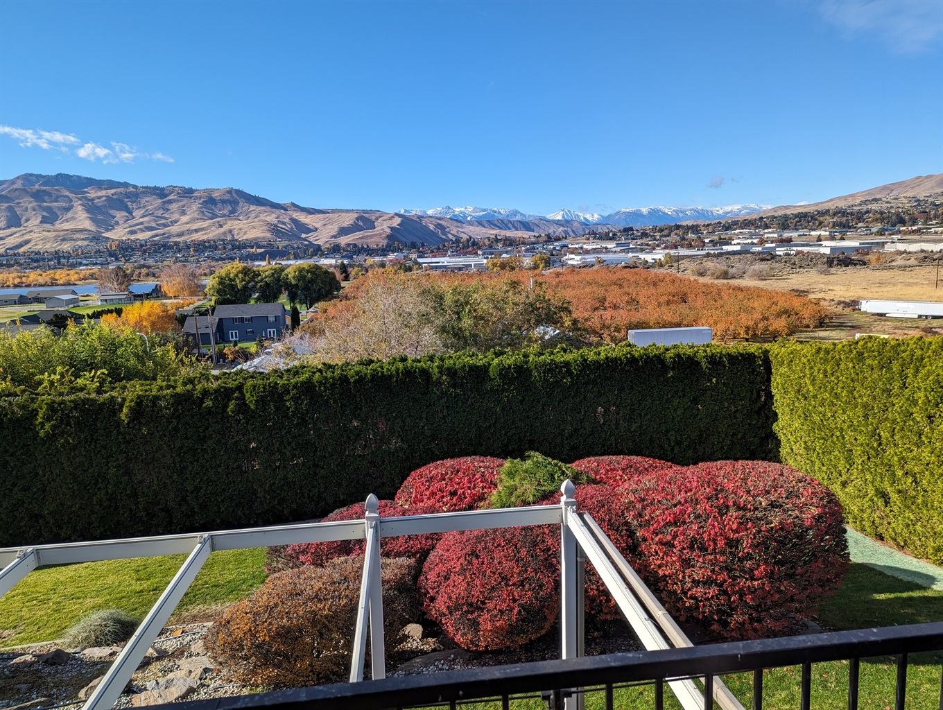 The home sits on half an acre, fully fenced and beautifully landscaped for relaxation and privacy. Enjoy morning coffee or evening cocktails on the deck while taking in panoramic views of the Columbia River, the Cascades, and the Wenatchee city lights.